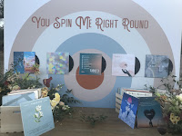 Following the ceremony, we walked further around the lake to the set up bar for cocktails and more wine, in the meantime, the wedding party moved over to the dinner area for some more post ceremony photos and then rejoined the cocktail part. At 6:30 we walked the balance of the way around the lake to the dining and dancing area. The record album display with a series of covers listing our assigned tables was a fitting touch. After all were seated, Meg and Ed entered the area. Meg stood on the dance floor in the middle of the seated guests, Ed stepped over to a set up chair, microphone, and his Epiphone Guitar, which Mark had given Ed years before. (Mark had purchased the guitar in Charlottesville, Virginia in 1966 while in college.) Ed played the opening guitar solo to Paul Simon‘s Kathy‘s Song. Then the DJ announced the traditional dance between the bride and groom as this Simon & Garfunkel classic recording of the song played over the sound system. A wonderfully appropriate song and a moving dance.